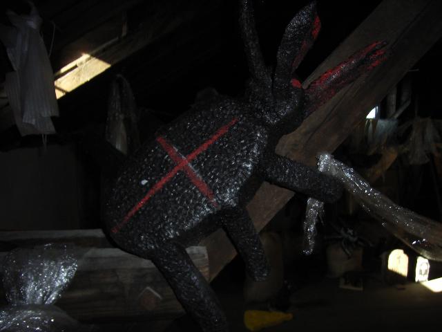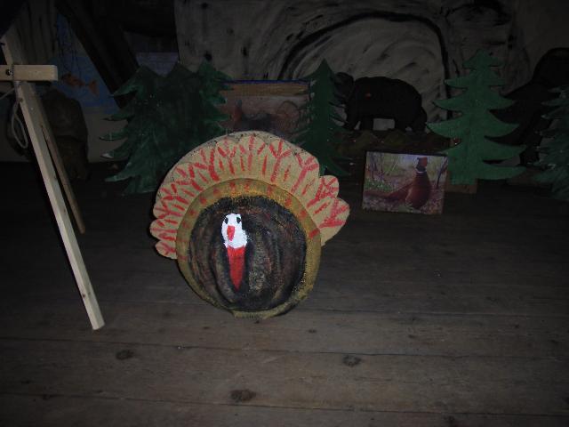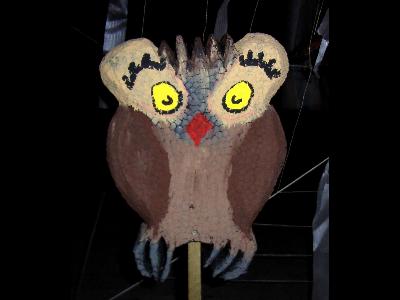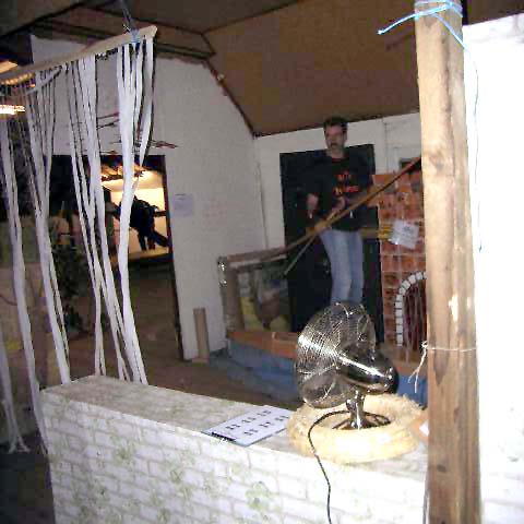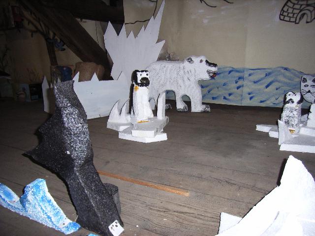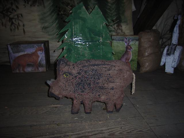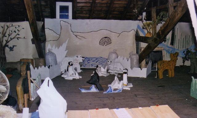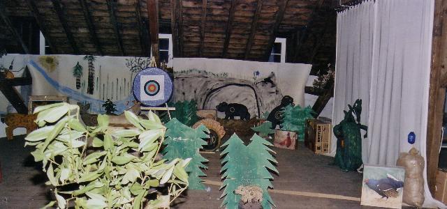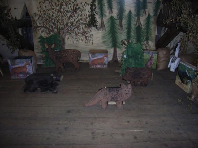 aus erfolgte. Mit jeder Menge Zweigen und Kartons mit ausgeschnittenen