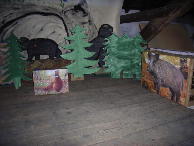 Schießbahnen über 40 Tiere für Distanzen von 5 bis 15 meter gestellt, beim